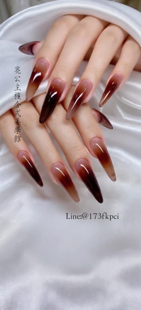 亮公主專業延甲技術,琥珀深色暈染。